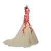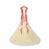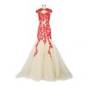 Champagne Evening Dresses Red Lace Applique