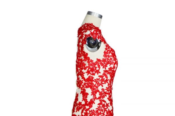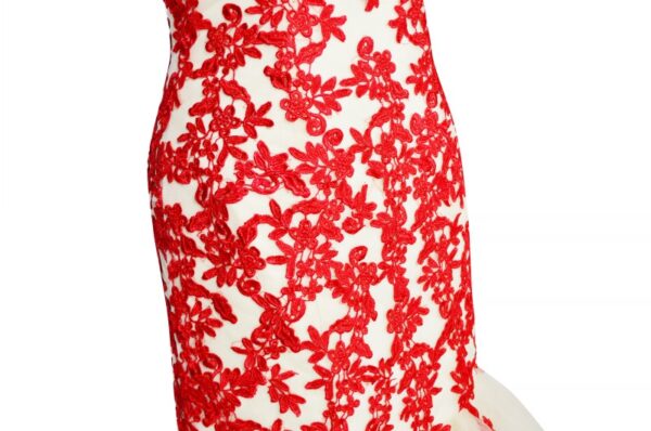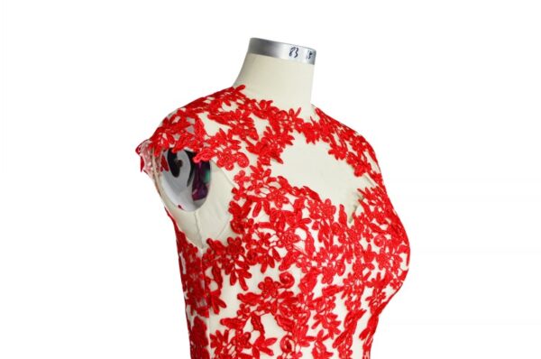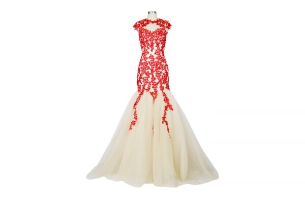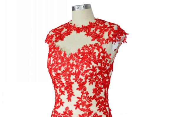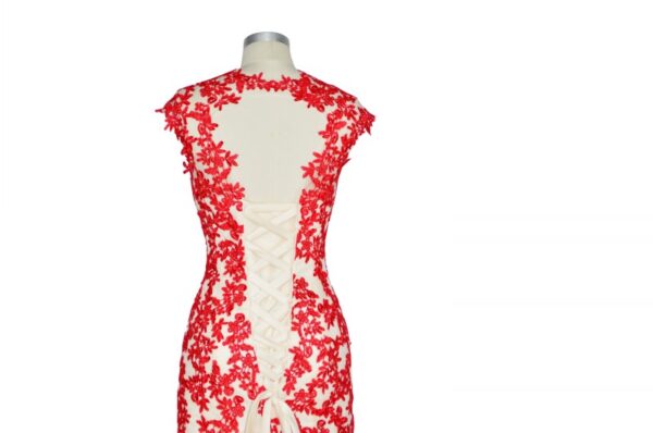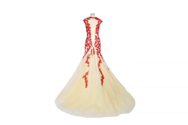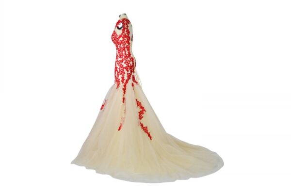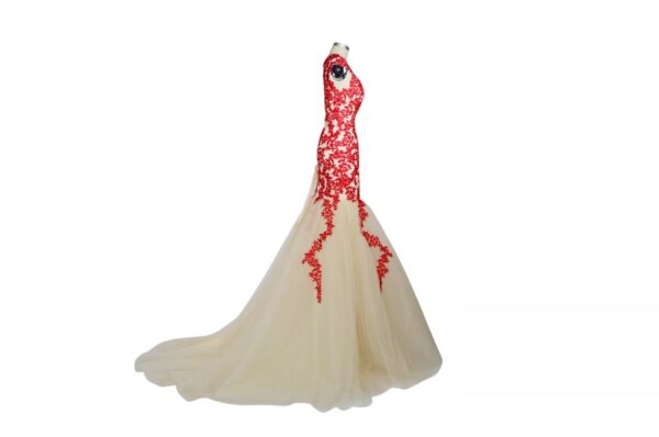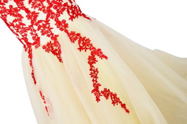 Champagne Evening Dresses Red Lace Applique