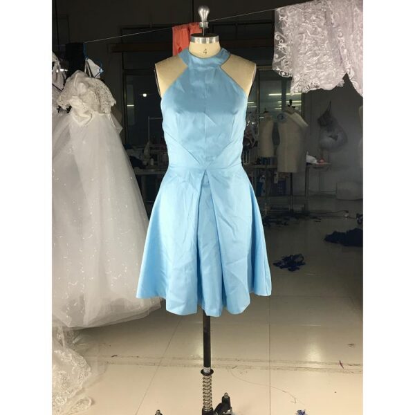 Cocktail Dresses Satin Jewel Real Sample Sky Blue