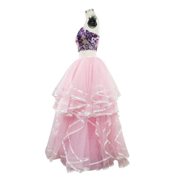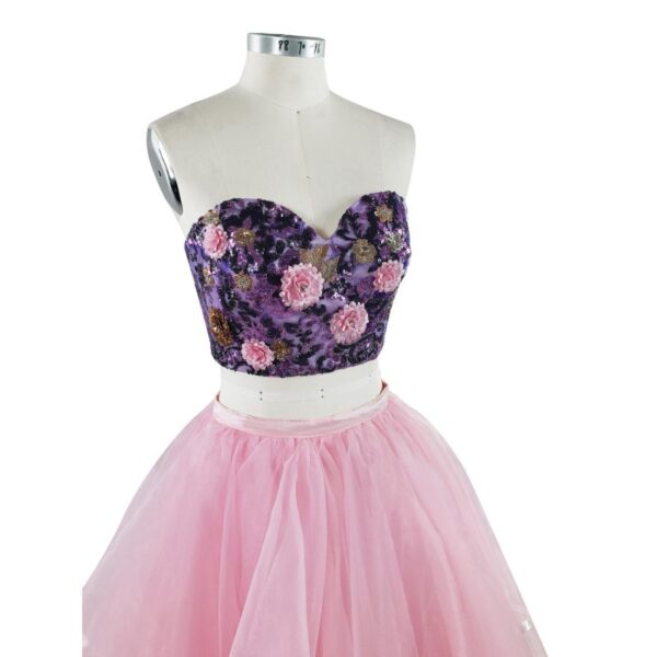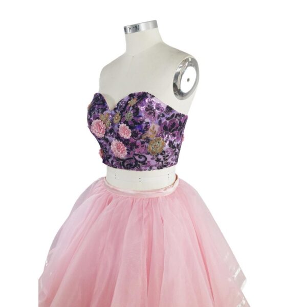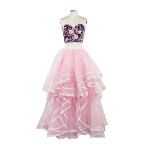 Evening Dresses Pink Lace Applique Two Pieces