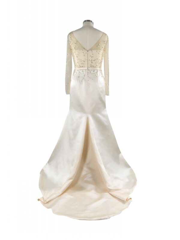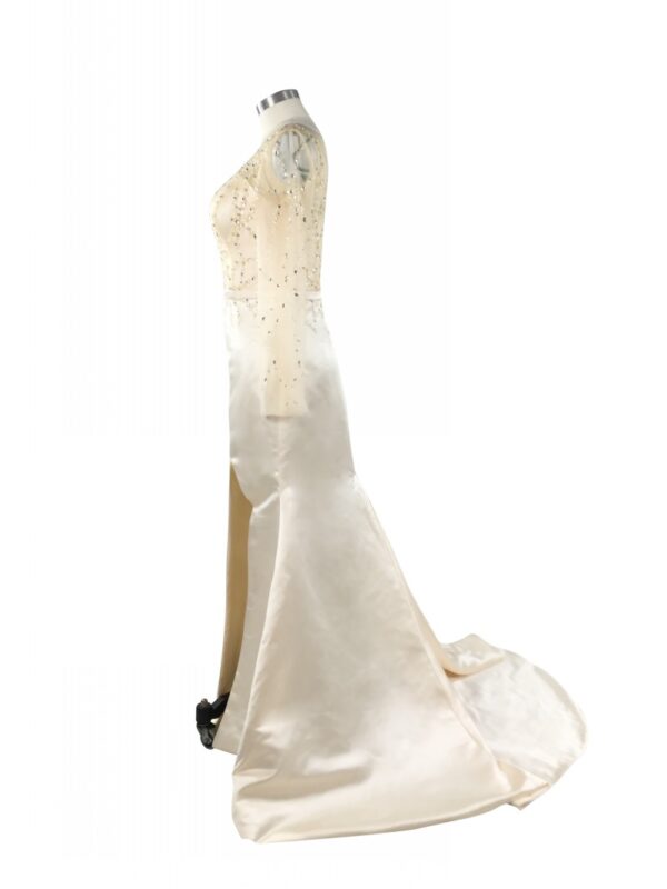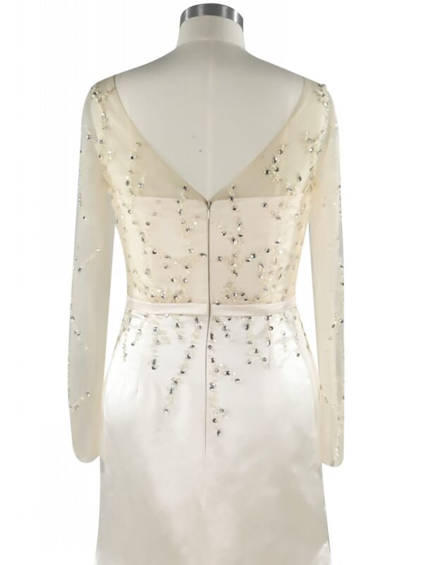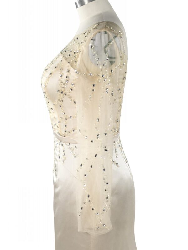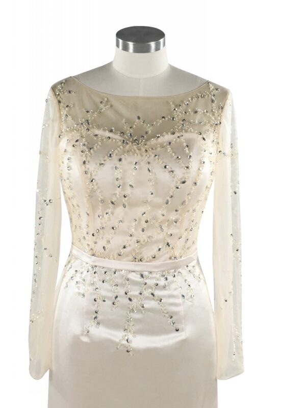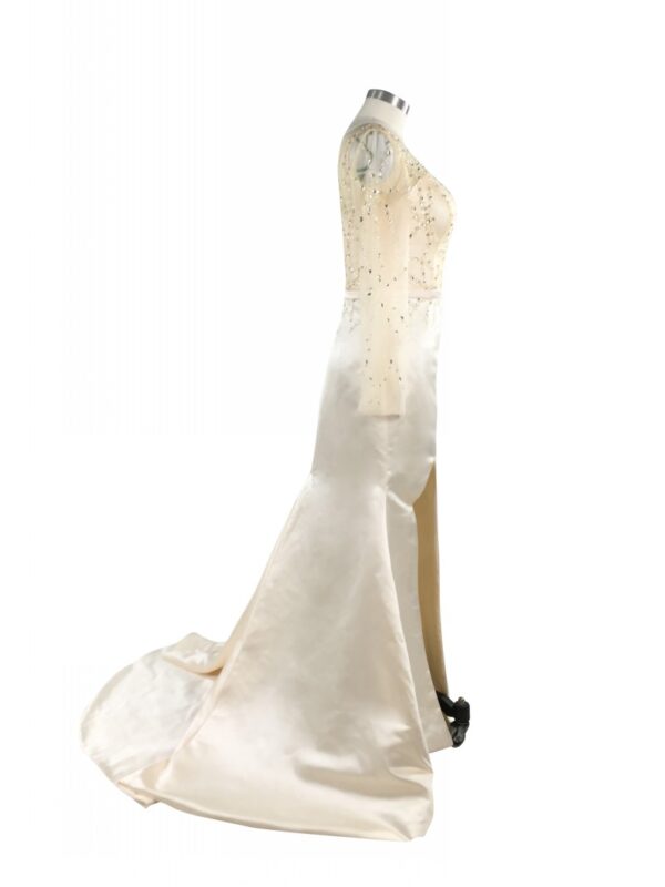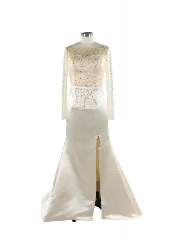 Evening Dresses Satin Long Sleeves Beaded Front Split