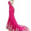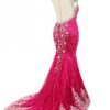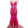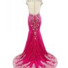 Evening Dresses Sex Back V-Neck Fuchsia Lace Applique