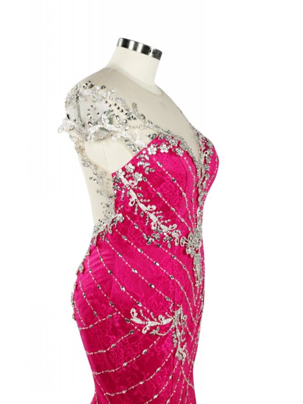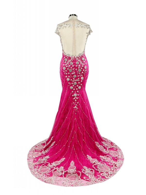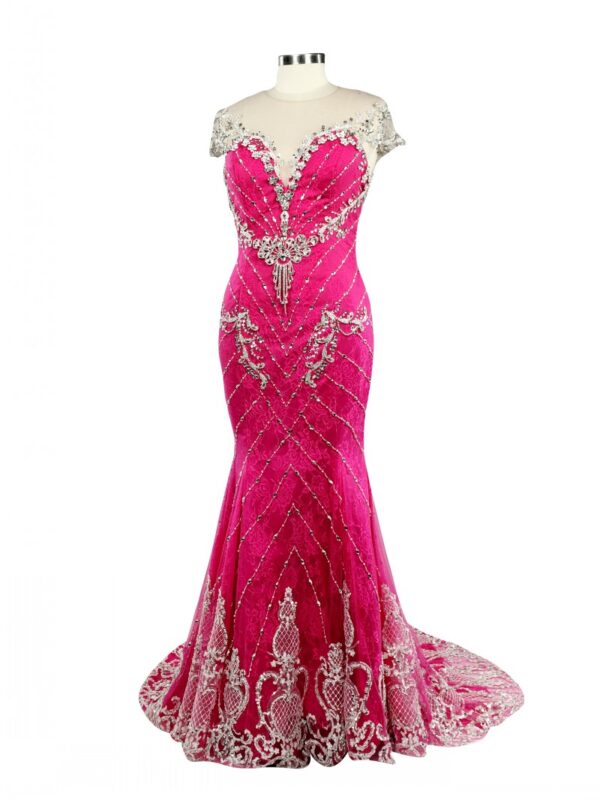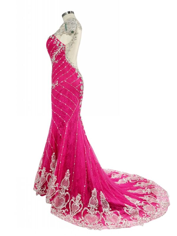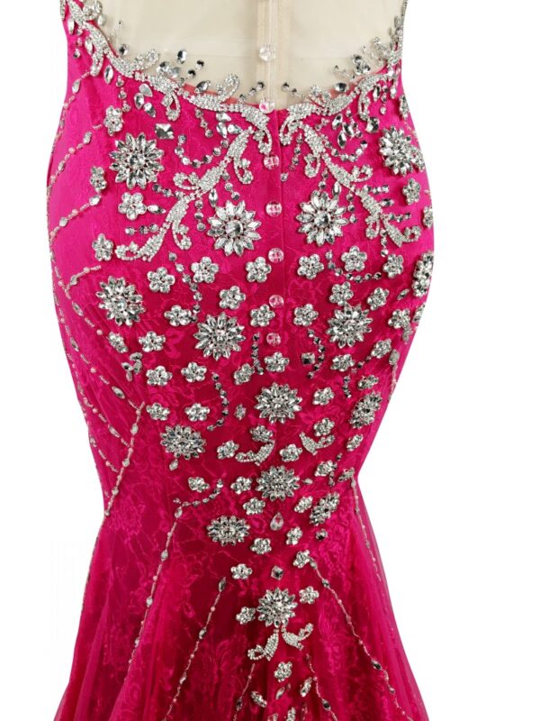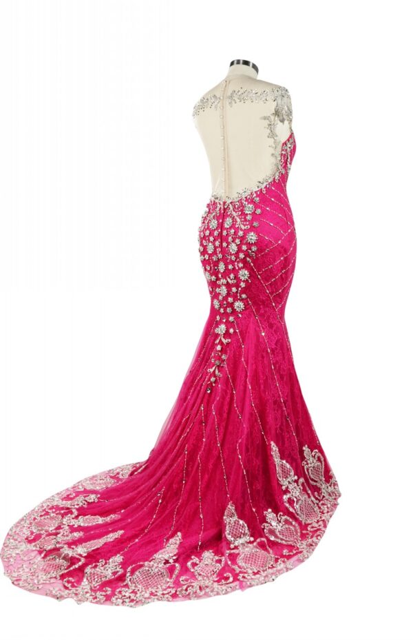 Evening Dresses Sex Back V-Neck Fuchsia Lace Applique