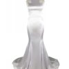 Evening Dresses Zipper Silver Elastic Satin Mermaid