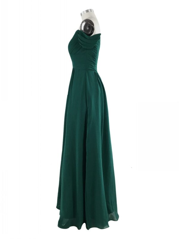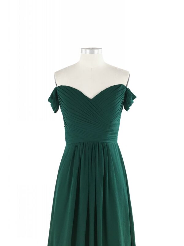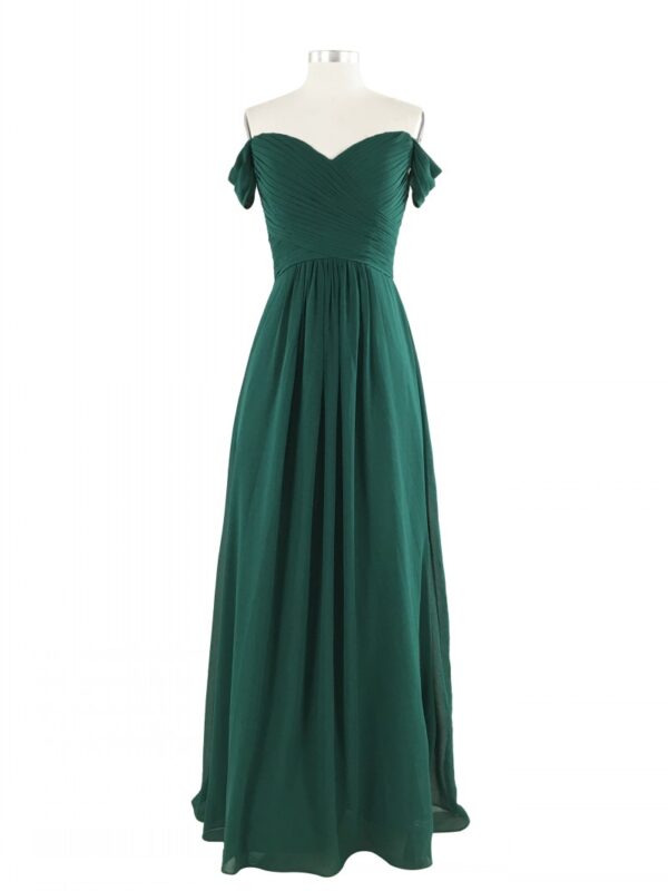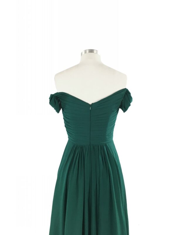 Green Chiffon Bridesmaid Zipper Off Shoulder