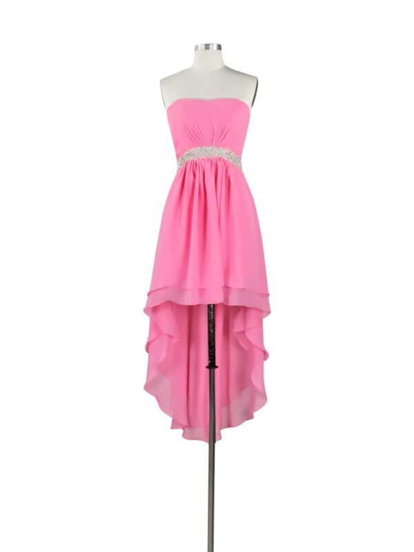 Pink Chiffon Bridesmaid Dresses Hi-Lo Zipper
