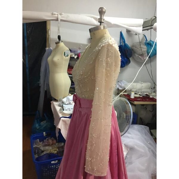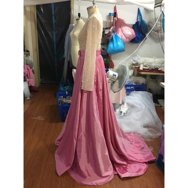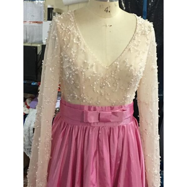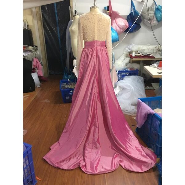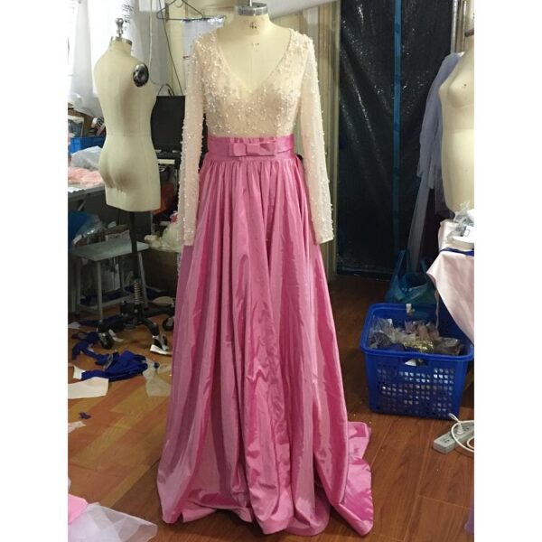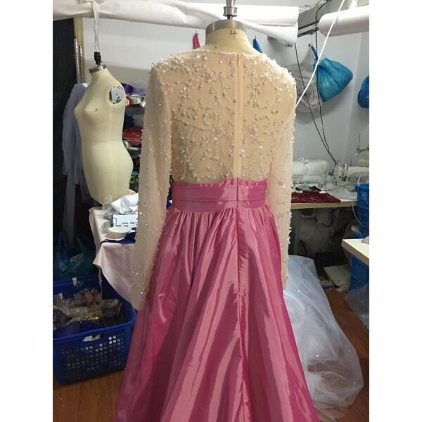 Pink Evening Dresses Sex Back A-line Long Sleeve