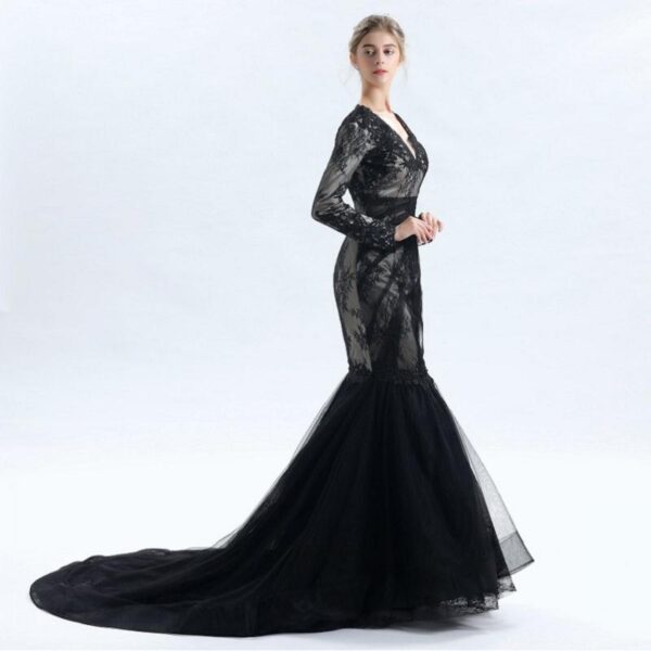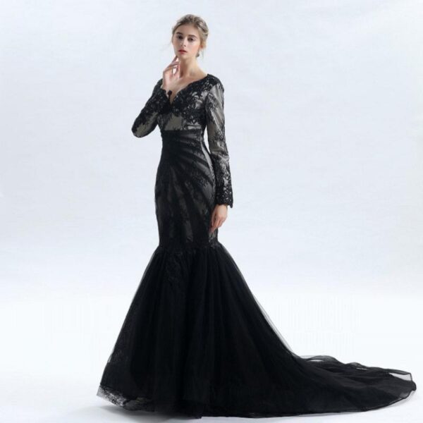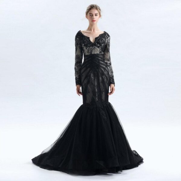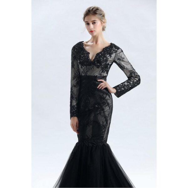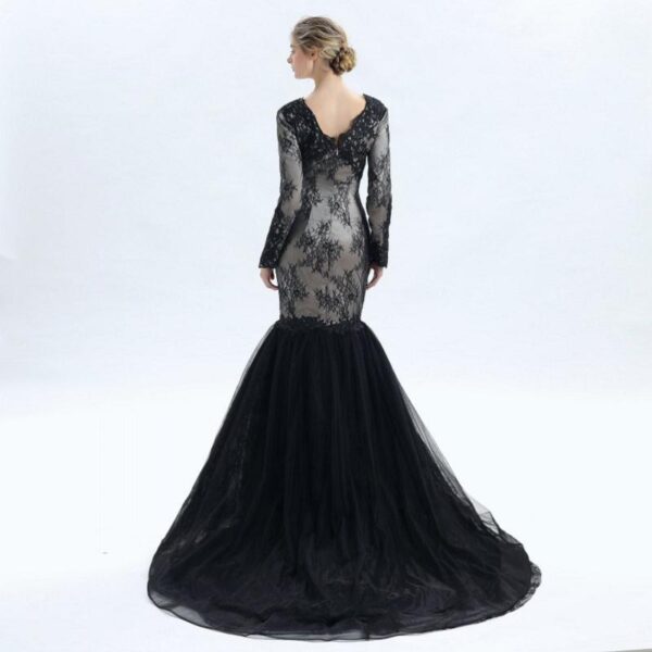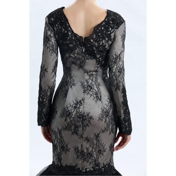 Prom dress for party Mermaid Black Lace Long Sleeve Evening Dress